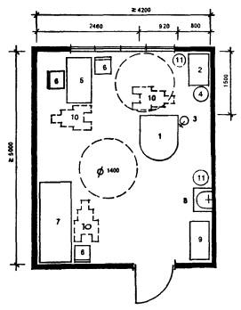 РИС. 6.16. КАБИНЕТ ОЗОКЕРИТО-И ПАРАФИНОЛЕЧЕНИЯ И ГОРЯЧЕГО УКУТЫВАНИЯ