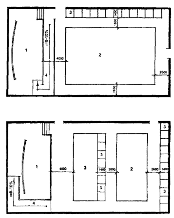 ПРИМЕРЫ ПЛАНИРОВКИ МЕЛЬЦЕРОВСКИХ БОКСОВ НА 1 И НА 2 МЕСТА 7. ТРЕБОВАНИЯ К ПОМЕЩЕНИЯМ КУЛЬТУРНО-МАССОВОГО ОБСЛУЖИВАНИЯВ состав помещений культурно-массового