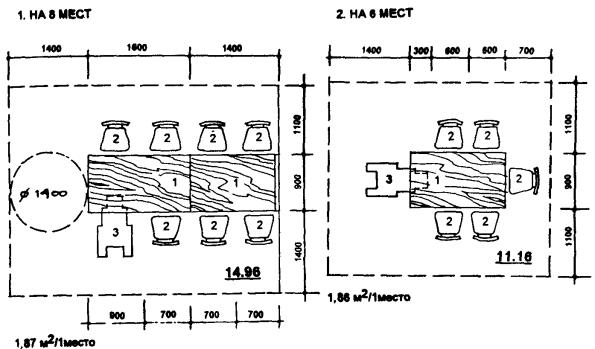 вместимость столовой или буфета персонала. Чтобы определить площадь
