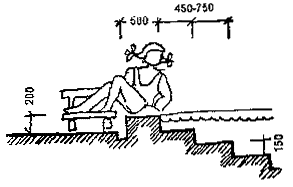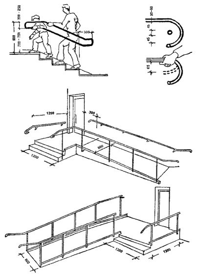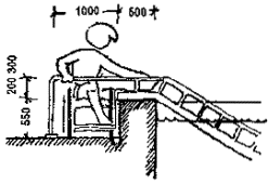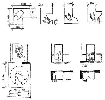 функционирование инвалидов-колясочников, приведены на Рис. 7.2 (пунктиром указана рабочая зона). На Рис. 7.3 - 7.5 приведены примеры приспособлений и