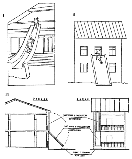 мост; 9 - многоскатная горка; 10 - односкатная горка; 11- качели-подъемники;