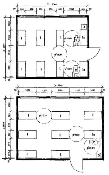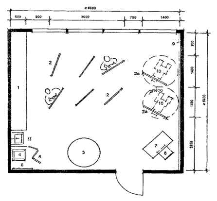 планировки кружковых помещений (живописи и рисунка, музыкальных занятий)