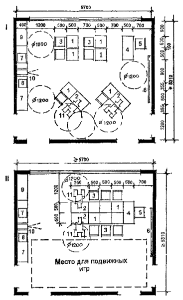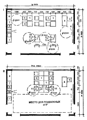 дошкольников обеденные места располагаются на площади групповой комнаты и