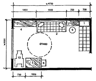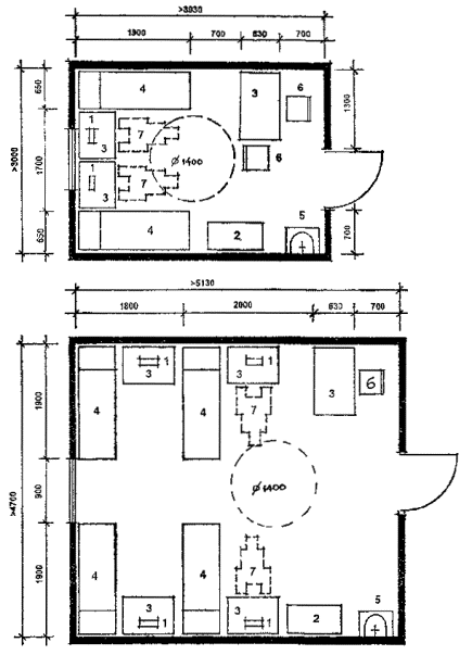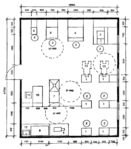 "Требования к помещениям проживания" (Рис. 4.2, 4.3). Производственные помещения кухни проектируются в