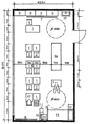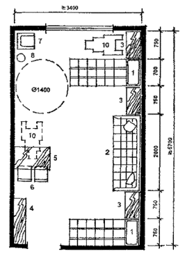 определяется заданием на проектирование в зависимости от профиля учреждения и местных условий. Планировочные