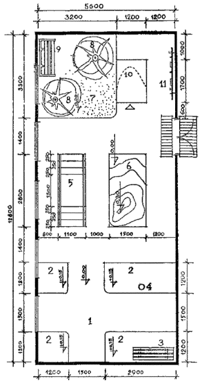 звуковые ориентиры; 17 - вертикальные гимнастические лестницы