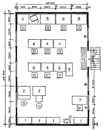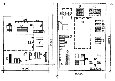 алфавитный; 13 - вкопанные шины; 14 -наклонная лестница II.