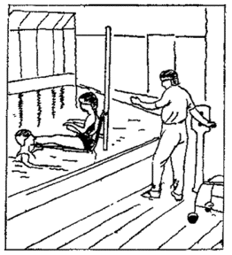 бревно на стойках; 2 - скамья; 3 - наклонная лестница; 4 - наклонная доска; 5 -