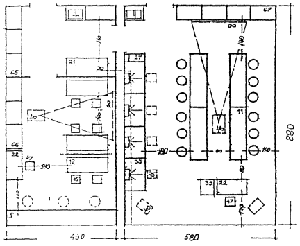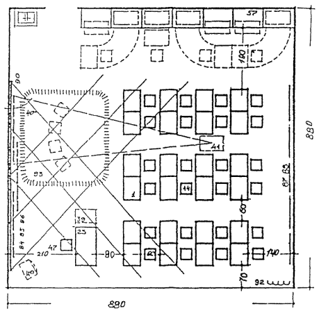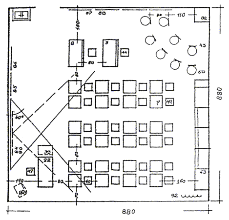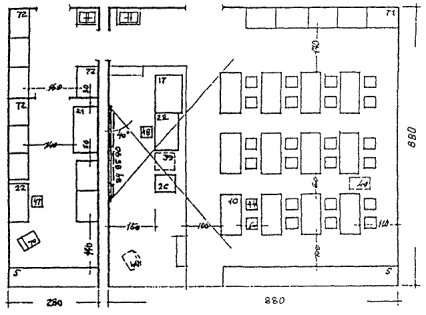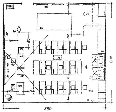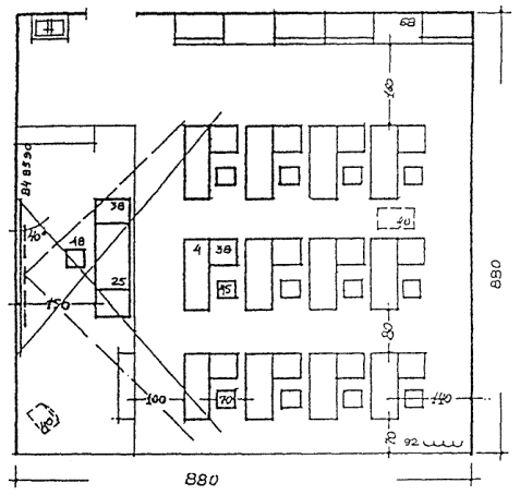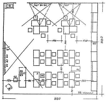 ПРИМЕРЫ ОРГАНИЗАЦИИ ПЛАНОВ УЧЕБНЫХ ПОМЕЩЕНИЙ, ОСНОВАННЫХ НА ПЛАНИРОВОЧНОМ МОДУЛЕ 9 м. Рисунок 8.1 КЛАСС НАЧАЛЬНОЙ ШКОЛЫ Рисунок 8.2. СПАЛЬНЯ - ИГРОВАЯ (КОМНАТА ОТДЫХА) Рисунок 8.3. УНИВЕРСАЛЬНОЕ ПОМЕЩЕНИЕ ДЛЯ ГРУПП ПРОДЛЕННОГО ДНЯ Рисунок 8.4. КОМНАТА ТРУДА, МОДЕЛИРОВАНИЯ И ТЕХНИЧЕСКОЙ ИГРУШКИ, ИЗОБРАЗИТЕЛЬНОГО ИСКУССТВА, ПРИРОДЫ Рисунок 8.5. КАБИНЕТ УНИВЕРСАЛЬНОГО НАЗНАЧЕНИЯ Рисунок 8.6. КОМНАТЫ ИНДИВИДУАЛЬНЫХ ЗАНЯТИЙ Рисунок 8.7. ЛАБОРАТОРИЯ ФИЗИКИ С ЛАБОРАНТСКОЙ Рисунок 8.8. ЛАБОРАНТСКАЯ - ПРАКТИКУМ, ПРАКТИКУМ ПО ФИЗИКЕ Рисунок 8.9. ЛАБОРАТОРИЯ С ЛАБОРАНТСКОЙ Рисунок 8.10. ЛАБОРАНТСКАЯ-ПРАКТИКУМ, ПРАКТИКУМ ПО БИОЛОГИИ Рисунок 8.11. ЛАБОРАТОРИЯ ХИМИИ С ЛАБОРАНТСКОЙ Рисунок 8.12. ЛАБОРАНТСКАЯ-ПРАКТИКУМ, ПРАКТИКУМ ПО ХИМИИ Рисунок 8.13. КОМПЬЮТЕРНЫЙ КЛАСС Рисунок 8.14. КАБИНЕТ ИНОСТРАННОГО ЯЗЫКА Рисунок 8.15. КАБИНЕТ ТЕХНИЧЕСКОГО ЧЕРЧЕНИЯ Рисунок 8. 16. УНИВЕРСАЛЬНОЕ ПОМЕЩЕНИЕ ТЕХНИЧЕСКОГО ТВОРЧЕСТВА Рисунок 8.17. МАСТЕРСКАЯ ПО ИЗУЧЕНИЮ ТЕХНОЛОГИИ И ОБРАБОТКЕ МЕТАЛЛА Рисунок 8.18. МАСТЕРСКАЯ ПО ИЗУЧЕНИЮ ТЕХНОЛОГИИ И ОБРАБОТКЕ ДРЕВЕСИНЫ Рисунок 8.19. МАСТЕРСКАЯ ПО ИЗУЧЕНИЮ ТЕХНОЛОГИИ И ОБРАБОТКЕ ТКАНИ Рисунок 8.20. КАБИНЕТ ДОМОВОДСТВА (КУЛИНАРИИ И БЫТОВОЙ) ЭЛЕКТРОНИКИ Рисунок 8.21. СТУДИЯ МУЗЫКИ И ПЕНИЯ Рисунок 8.22. ПРИМЕРНАЯ НОМЕНКЛАТУРА МЕБЕЛИ И ОБОРУДОВАНИЯ к рис. 8.1 - 8.21