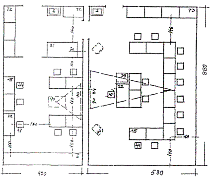 Формирование состава общешкольных помещений осуществляется на основе следующих параметров: 1) единовременная вместимость помещения; 2) количество помещений; 3) нормируемая площадь для конкретных функциональных групп помещений по видам деятельности. Расчетные формулы К=Е/Н и П=Е´М (Е=П/М), (где К - количество помещений, Е - единовременная вместимость (чел.), Н - средняя наполняемость помещения (чел.), М - площадь на 1 место по конкретной функциональной группе помещений (м2), П - нормируемая площадь функциональной группы помещений) дадут возможность определить основные параметры для формирования состава помещения общешкольной группы помещений при проектировании и при реконструкции (приспособлении) школьного здания: а) при проектировании нового здания при заданном проценте охвата или единовременной вместимости данной функциональной группы, помещений можно определить нормируемую площадь. Далее, определив площадь и габариты основных рабочих помещений по соответствующим приложениям МГСН 4.06-96, можно определить параметры помещений обслуживающего назначения; б) при реконструкции существующего здания - на выделенной площади (при заданных видах деятельности) определяется примерная единовременная вместимость, количество помещений и конкретная площадь каждой функциональной группы помещений. Процент охвата взрослого населения различными видами деятельности в свободное время предлагается определять исходя из реальной пропускной способности группы общешкольных помещений. Комплексный подход к расчету пропускной способности учебной и общешкольной групп помещений общеобразовательных учреждений сетевого назначения.Комплексный подход к расчету пропускной способности общеобразовательных учреждений сетевого назначения по методу Куркина - Ратушного (табл. 14, 15) ориентирована на сетевые-кустовые школы, поэтому их формирование зависит от определенных градостроительных условий. Особенности формирования зданий школ III или II - III ступени с дифференцированным профилированным обучением включают: 1) градостроительный аспект, 2) структурный (организационно-педагогический) и 3) функциональный, касающийся учебных и общешкольных групп помещений. Градостроительный аспект базируется на социально-педагогических требованиях, вытекающих из состояния сети зданий и ее материальной среды, соотнесенной на одного учащегося, или из задач нового строительства: а) Базовый градостроительный принцип органически связан со сложившимся фондом зданий, когда на уже действующую систему планируется учебно-воспитательный центр для погашения дефицита площади по отношению к целевой нормативной программе по МГСН 4.06-96. По удельным показателям нормируемая площадь сложившегося фонда зданий примерно в 4 - 6 раз ниже расчетной (4,6 м2 вместо 16 - 25 м2). Отсюда типы школ с дифференцированным обучением должны рассчитываться на группы общеобразовательных школ I - II ступеней обучения с таким расчетом, чтобы часть учащихся старших возрастов перевести во вновь создаваемые школьные комплексы в составе школ II - III и III ступеней обучения. В этом случае за счет оттока старших школьников из действующих школ в эти центры повысится комфорт учебной среды обитания, для учащихся начальной и основной школ. Реально ее можно увеличить в 2 - 2,5 раза, т.е. выйти на учебные нормируемые площ