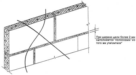 Примечание - Заполнение широких щелей между плитами утеплителя штукатурным (клеящим) составом не допускается. _____________ * Контролируемый параметр Рисунок А2. - Наклейка плит утеплителя на поверхность стены способом «перевязки» Рисунок А3. - Обычная