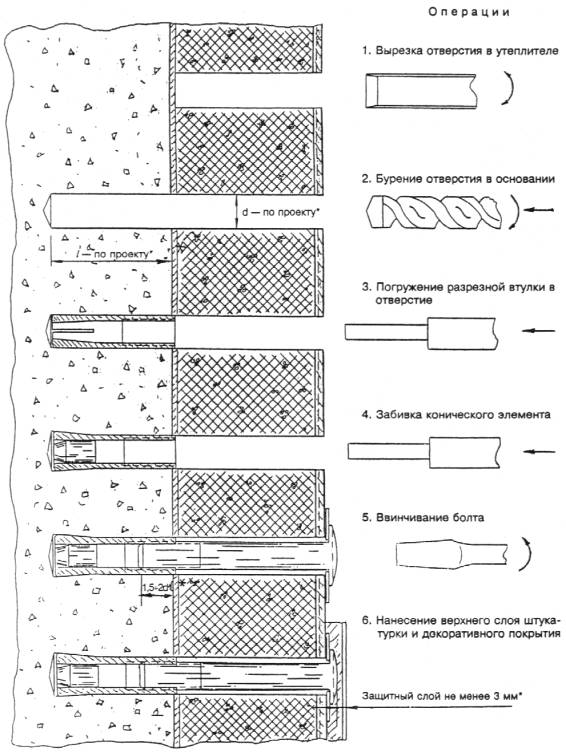 многослойную конструкцию, состоящую из плитного утеплителя, закрепляемого на