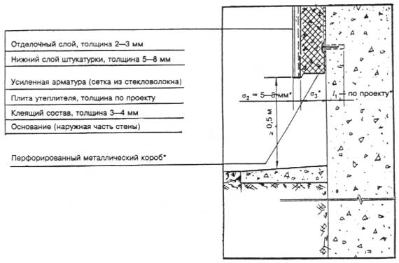 пустотелых блоков) _____________ * Контролируемый параметр Рисунок А8. - Фрагмент наружной теплоизоляции здания с тонкой штукатуркой по