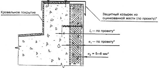 части фасада здания _____________ * Контролируемый параметр Рисунок А12. - Примыкание теплоизоляционного слоя к парапету в верхней части фасада _____________ * Контролируемый параметр Рисунок А13. - Фрагмент примыкания наружной теплоизоляции здания к карнизной плите