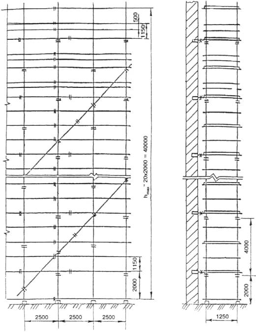 поверхность стены при работе на фасадах с приставных лестниц; предусмотреть