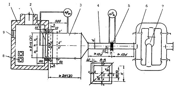 - диафрагма; 6 - регулирующая заслонка; 7 - вентилятор; 8 - иллюминатор; 9 -