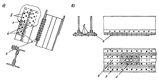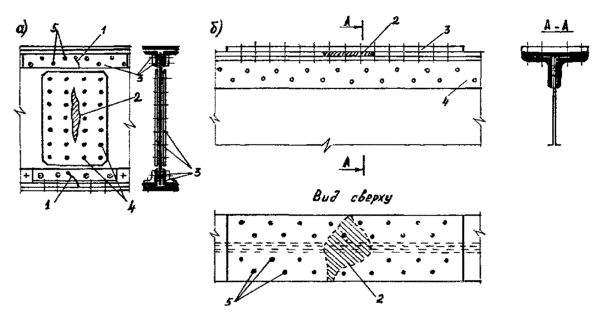 поврежденных элементов балок или ветвей клепаных элементов ферм, а также