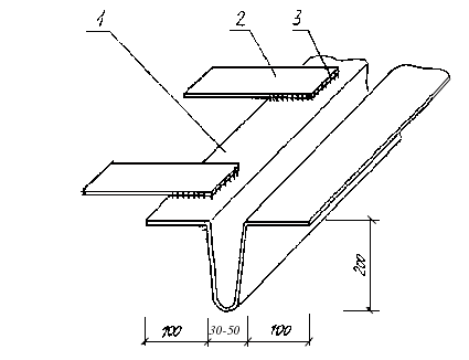 компенсатор; 6 - гидроизоляция; 7 - полиэтиленовая пленка Рис. 4. Металлический компенсатор для деформационных швов заполненного типа: 1 - металлический компенсатор; 2 - накладки,