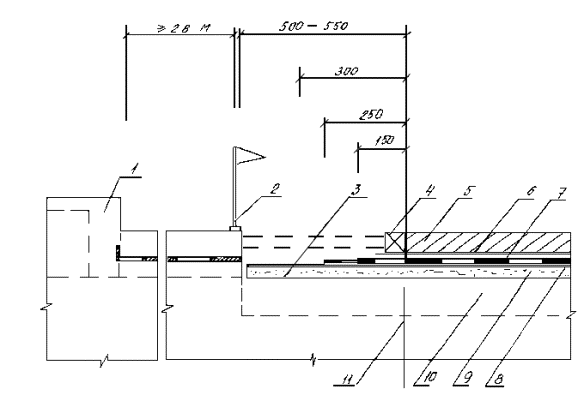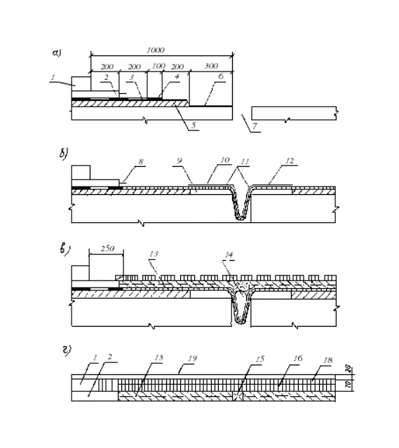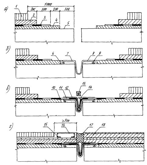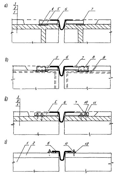 гидроизоляция, 4 - металлическая пластина, перекрывающая зазор (d = 8 - 10 втоплена в защитный слой); 5 - выравнивающий
