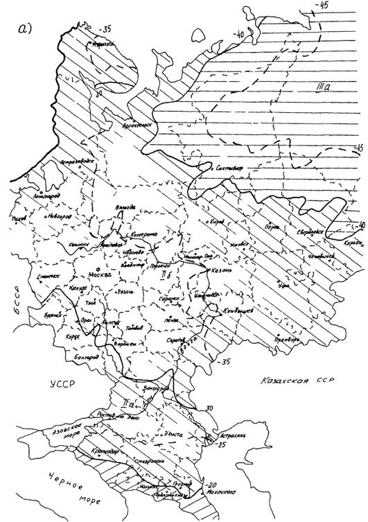 Для массивных железобетонных конструкций с толщиной элементов стенок, плит, полок более 60 см Tmax = tc (коробчатых пролетных строениях толщины стенок и плит суммируют). За температуру Tmin принимают минимальную среднесуточную tнс, а для массивных железобетонных конструкций - среднюю за пять наиболее холодных суток tнп температуру воздуха2). 2) По данным СНиП 2.01.01-82. 2.8. Территория РСФСР для применения конструкций деформационных швов может быть разделена на три строительно-климатические зоны по минимальной среднесуточной температуре воздуха: