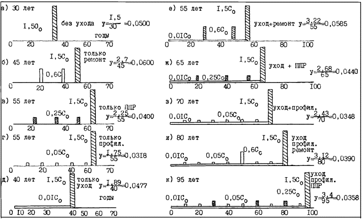 содержанию с периодическим ремонтом (рис. 1, и) или ППР (рис. 1, к). Сопоставление проводится по удельным показателям затрат