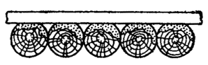 колеи укладывают четыре-пять бревен или брусьев. Бревна колеи окантовывают на