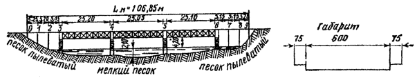 пролетных строений; наибольшую глубину воды в реке; ширину реки в межень; грунт