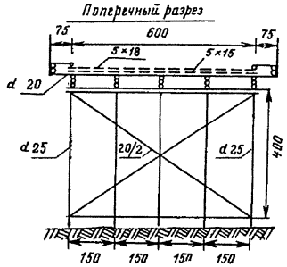 поперечный настил устраивают из досок толщиной 6 см, на который укладывают
