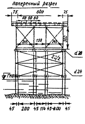 принимают равным диаметру свай, с которыми их скрепляют горизонтальными и