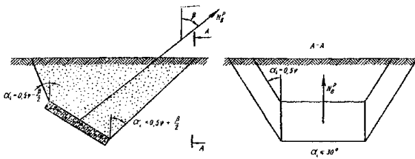 (ширина котлована принимается равной большей стороне для прямоугольных
