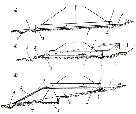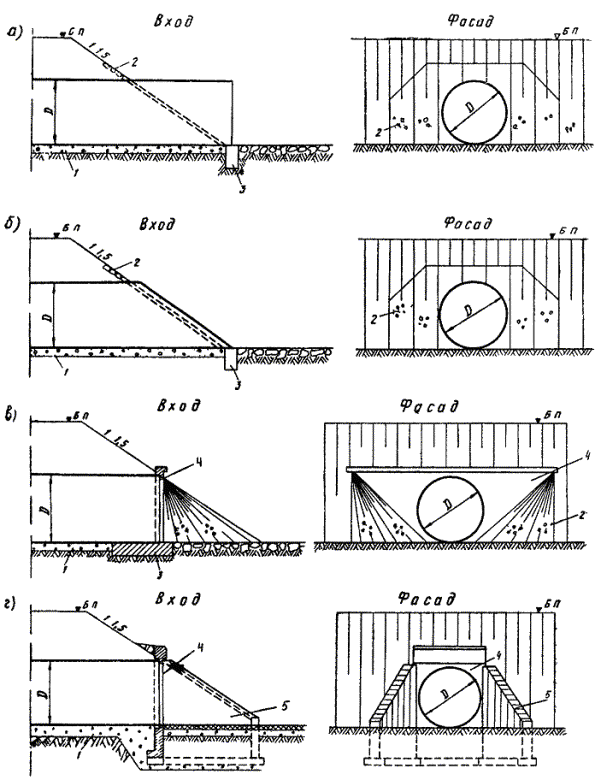 сопряжения трубы с насыпью, а также с подводящей и отводящей частями русла