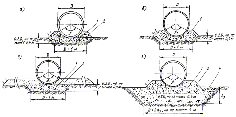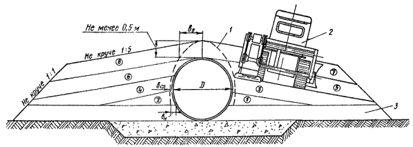 = 8 м. Для засыпки трубы до уровня жесткого слоя используется мелкий песок