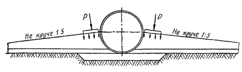нагрузкой на ось свыше 100 кН (10 тс) наименьшую толщину засыпки над трубами