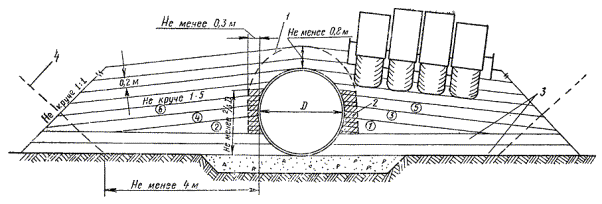подошвы рельса (0,5 м до бровки насыпи). Толщина засыпки над трубой в
