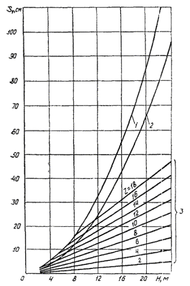 1 - ограничение высоты насыпи по смятию кромок элементов труб из стали 15 сп; 2 - то же, из стали 09Г2Д