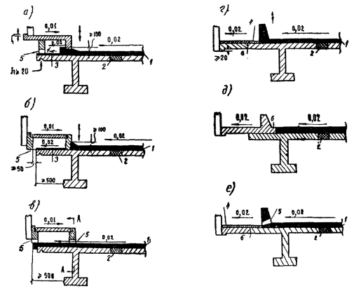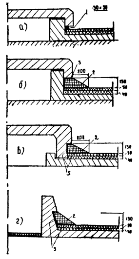 асфальт; 3 - обмазка горячим битумом При сопряжении по схеме рис.6,