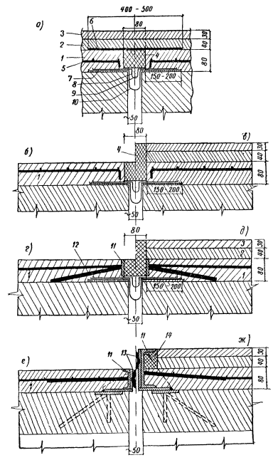 заполнением литым асфальтом пазы промазывают тонким слоем горячего битума 3, а затем заполняют их литым асфальтом