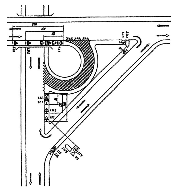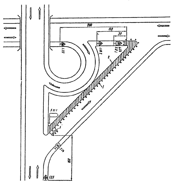 транспортных средств в местах разворота, въездах и съездах, местах