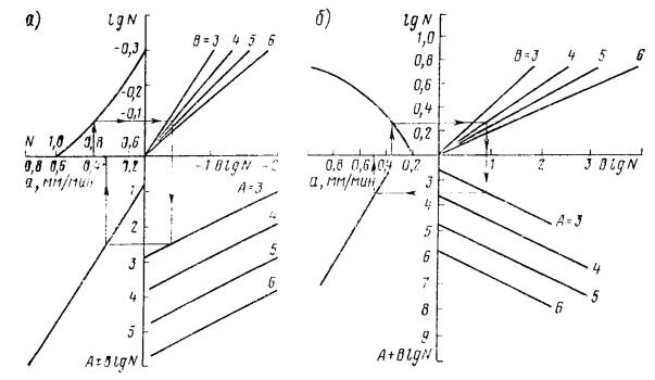 твердости покрытия к расчетной температуре 50 °С: а - для покрытий из горячих асфальтобетонных смесей; б - для покрытий из холодных битумоминеральных смесей. Стрелками показан порядок пользования номограммами |