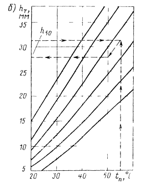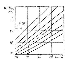 к расчетной температуре 50 °С. По полученному значению h50 назначают оптимальный для одиночной поверхностной