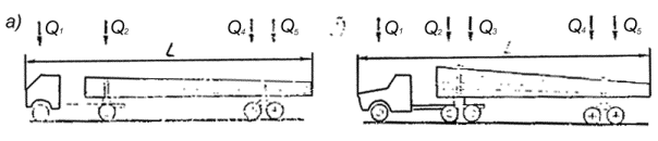 колеса данной п-й оси находят эквивалентную нагрузку Эквивалентная нагрузка от колес n-й оси двухосного автомобиля где Кдин - коэффициент динамичности, учитывающий повышение нагрузки на покрытие при колебаниях автомобиля и принимаемый равным 1,30; Qn - номинальная статическая нагрузка на колесо n-й оси (n = 1; 2). От колес n-й оси трехосного автомобиля нагрузки