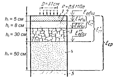 песок, гравий, шлак; 4 - грунт повышенной плотности; 5 - грунт, укрепленный