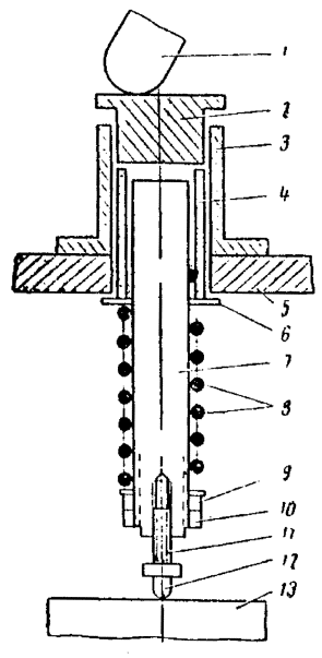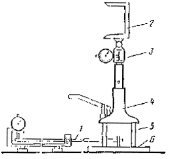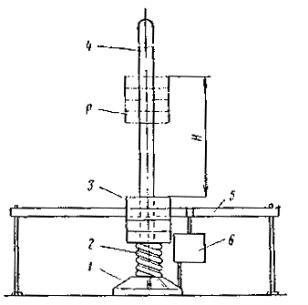 падающий груз; 4 - направляющая штанга; 5 - штатив измерительного прибора; 6 -