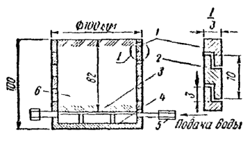 штуцер; 6 - грунтовый образец Рис. 21. Схема оборудования холодильника для испытания на морозное пучение грунтов: 1 - стенки холодильника; 2 -