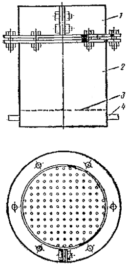 промежуточные кольца; 3 - днище с отверстиями; 4 - второе дно формы; 5 -