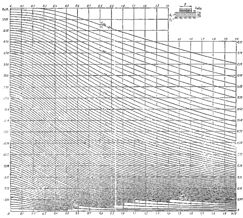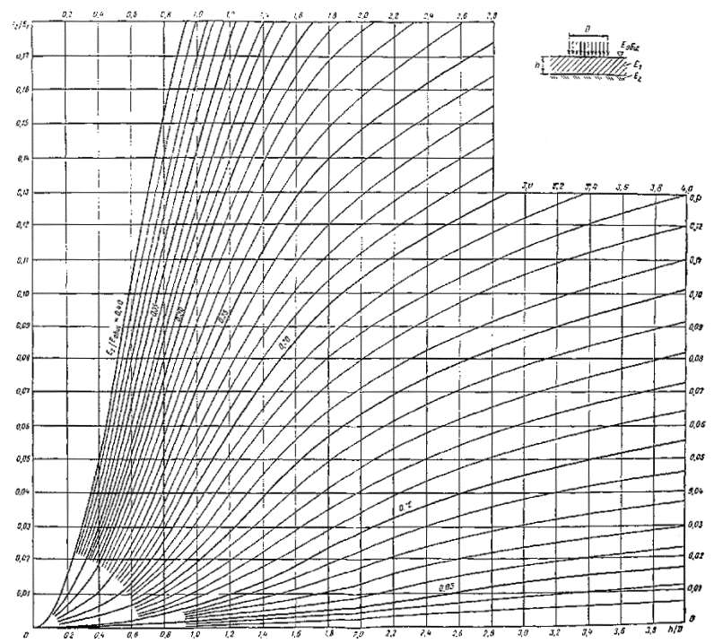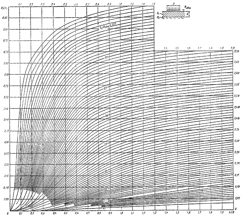 Номограмма для определения модуля упругости Е1 двухслойной системы