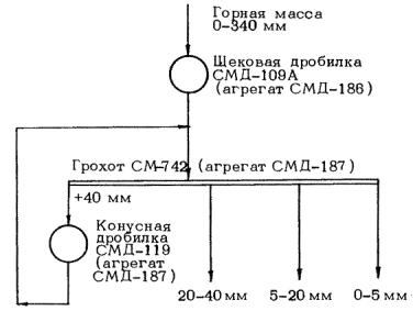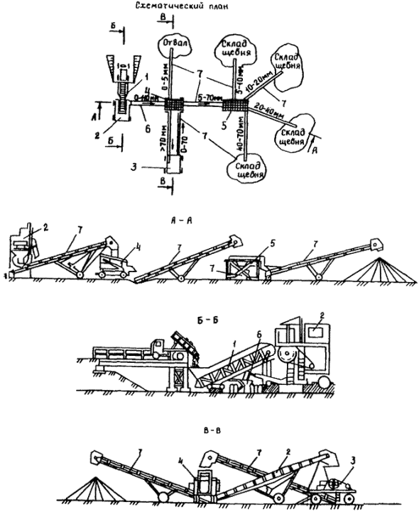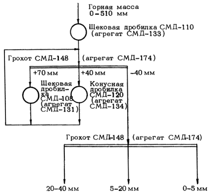 переработка по технологическим схемам, предусматривающим дробление, грохочение