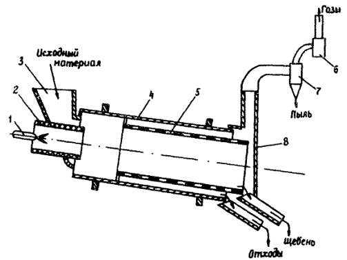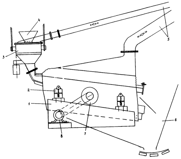 настоящего приложения. Схема пневмоударной дробилки: 1 - загрузочная воронка; 2 - патрубок для