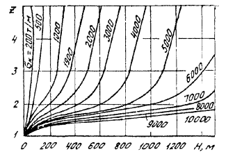значение h = 5 см; приведенный радиус выработки R = 500 см,