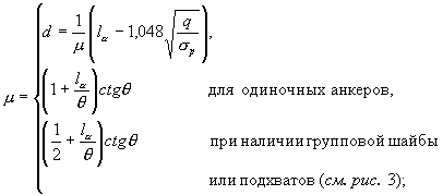 раствором τси = 450 тс/м2. Предельное напряжение сжатия Rспр = 115 кгс/см2. Предлагается определить параметры конструкции анкер-набрызг-бетонной крепи описанной выработки. Расчет по формулам глав 3, 4 и 7 рабочей длины анкера lр, полной длины l, межанкерного расстояния α и